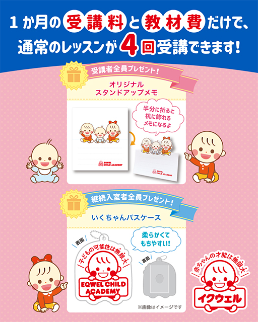 ※胎教コース・Happy Babyコース・特別支援コースのはじめての幼児教室応援キャンペーンはありません。